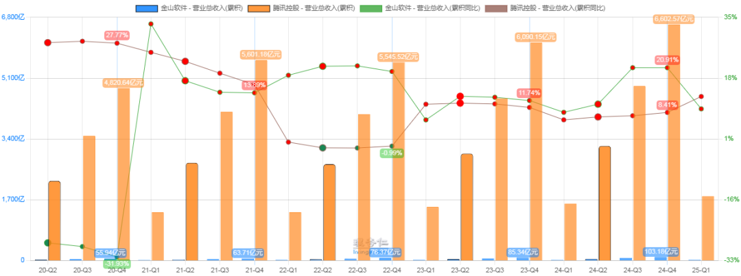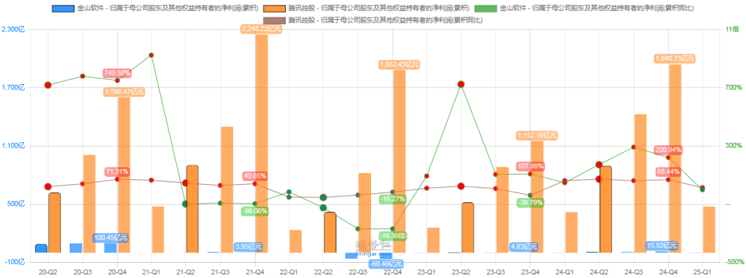 (1)营业收入和扣非净利润总额腾讯控股都远高于金山软件;营业收入和扣非净利润增速金山软件都高于腾讯控股。