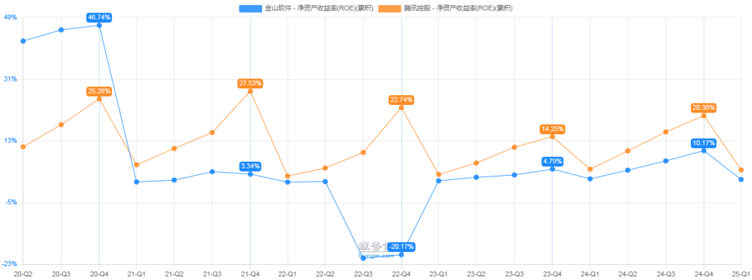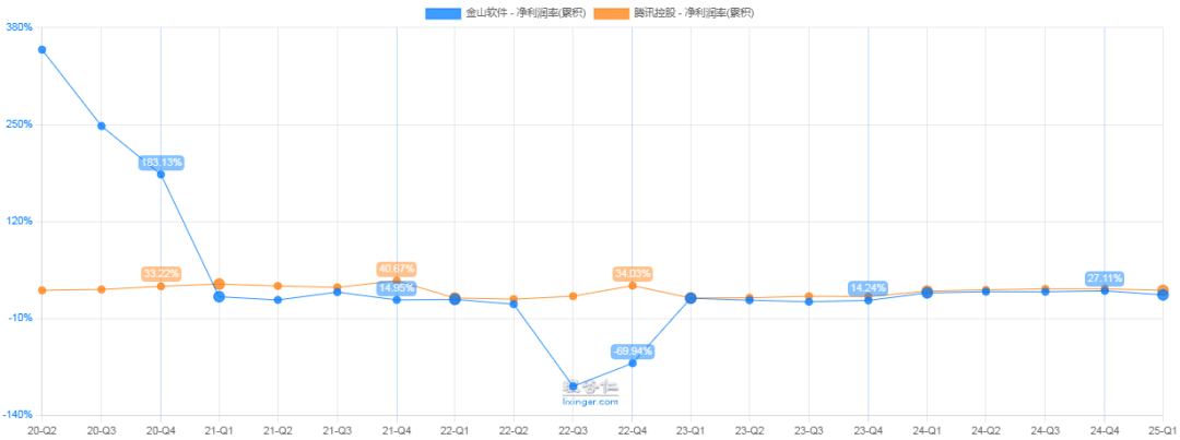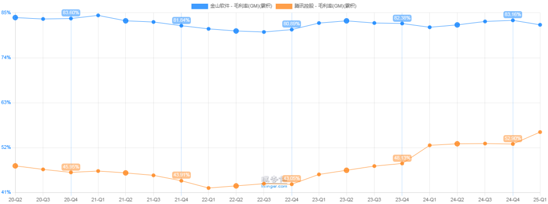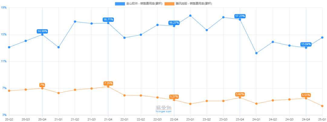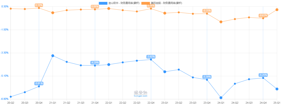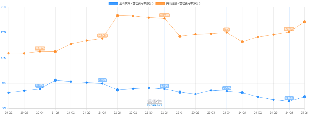 (5)费用率上,腾讯控股的管理费用率和财务费用率都要比金山软件高,金山软件的销售费用率比腾讯控股高。