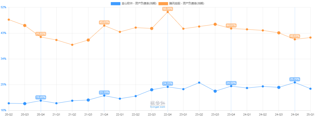 (3)负债率上,腾讯控股的资产负债率高于金山软件。