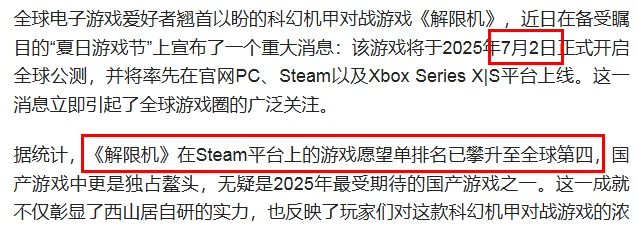 2、从短期来看市场非常期待的重磅《解限机》的上线计划是否有更新?